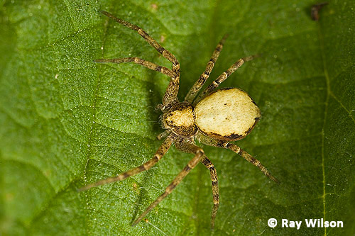 Most crab spiders are small (2-5mm) with cryptic brown markings which aid in their camouflage when sitting on the ground, tree trunks or dead vegetation. Xysticus cristatus (above and below) is the commonest of the British species.