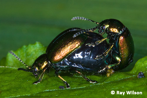 copulating Green Dock Beetles (Gastrophysa viridula) - Cheshire, England - June 2008