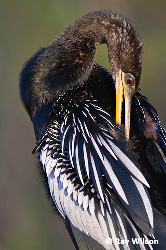 Anhingas are particularly common, often perching on the railing of the boardwalk and not even bothering to fly when you walk past, making it easy to get close-up portraits of their heads.