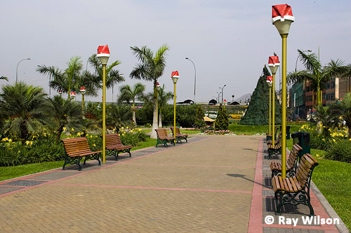 In central Lima, the street lamps in one of the parks were decorated with santa hats...it doesn't seem right celebrating Christmas when it is 28°C!