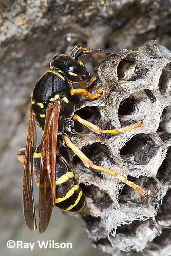 I found the wasp shown below busily building its nest on the side of a boulder in a damp meadow. After sending a few of the photos to a friend, he pointed me to a very recently published paper (April 2014) describing a newly discovered cryptic species that had previously been lumped with Polistes bischoffi. By closely examining magnifyed views of several different photos and working through the key in the paper it turned out to be a specimen of the newly described species P. helveticus and, assuming my ID is correct, the current record extends the known altitude range of this species by 750m as the previous highest recorded altitude for P. helveticus was 980m asl!