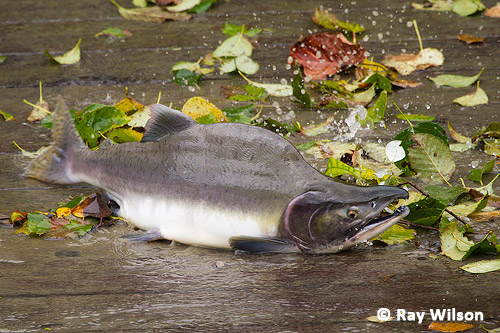 The fast water was causing problems for the salmon too. If they got their assault on rapids slightly wrong, they ended up being thrown onto the boardwalk where they flapped around helplessly until someone gave it a hand back into the water.