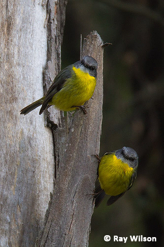 Unlike the numerous red/pink-breasted Australasian Robin species found in Australia, Yellow Robins are monomorphic and both sexes are identical.